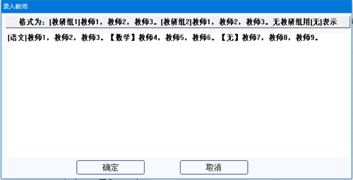 在图中一次性录入(粘贴)教师名单,教师之间用“,”分隔,然后点击确定按钮,即可一次性录入教师名单。