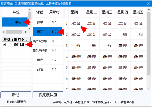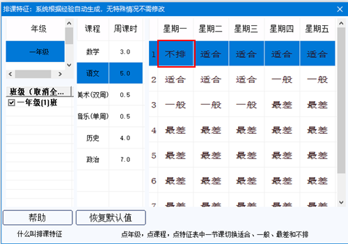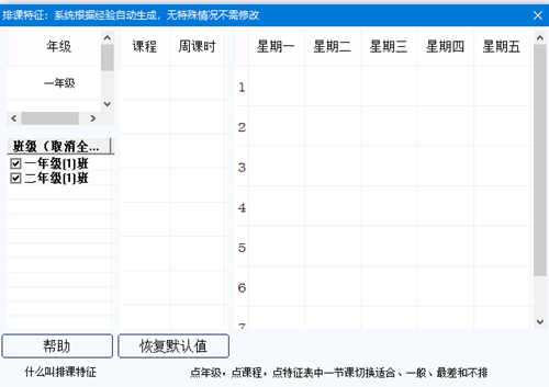 打开排课特征窗口,如下图: