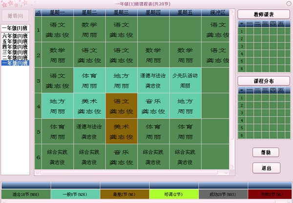 果如下图:重复将每个班的缓冲区中的内容拖放到课程表中来。