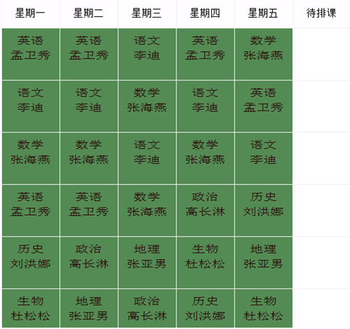 第二步:在课程表中点击星期一第一节,得到如上图所示的课程表,其中点击的地方高亮显示(“英语”)并凸出,